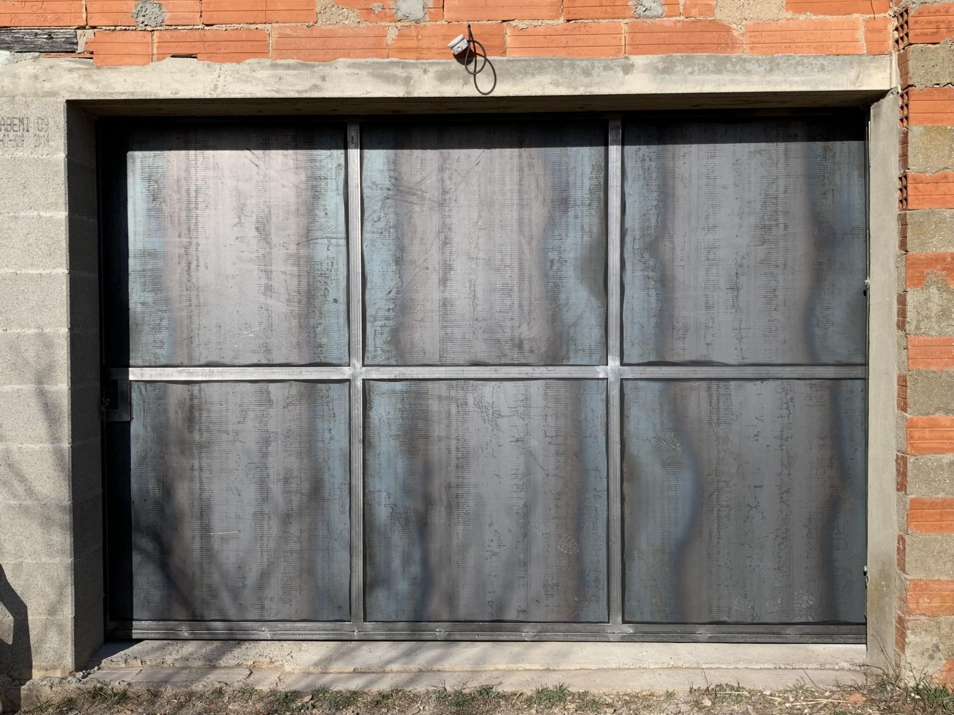 Porte coulissante pour garage aux Milles à Aix-en-Provence. Châssis en tube et face tôlée. Ouverture coulissante pour un gain de place compte tenu de la gardeur de celle-ci.