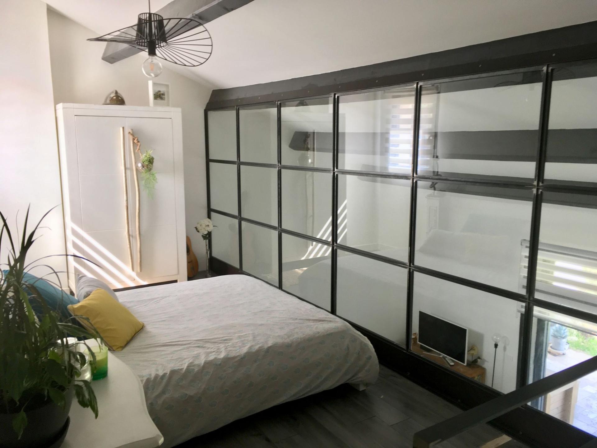Verrière de chambre pour une maison à Sausset Les Pins Sur la Côte Bleue, réalisation de ce projet pour une cliente qui souhaitait fermer sa mezzanine pour en faire une chambre et garder un maximum de luminosité.